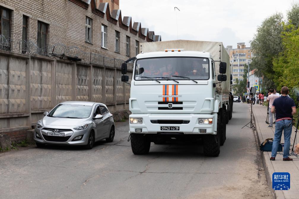 8月9日,在俄羅斯莫斯科州,救援車輛抵達事發工廠。新華社記者 白雪騏 攝