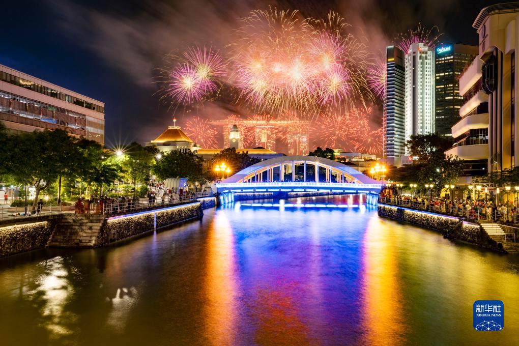 這是8月9日在新加坡國慶慶典上拍攝的煙花。新華社發(鄧智煒攝)