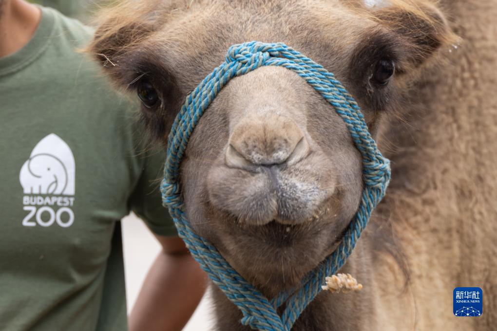 8月9日,在匈牙利布達佩斯動物園,駱駝品嘗特製蛋糕。