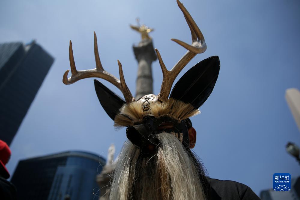 8月9日,在墨西哥首都墨西哥城,演員身着傳統服飾參加世界土著人民國際日慶祝活動。