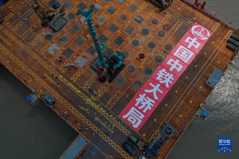 杭州灣跨海鐵路橋全長29.2公里,包括北、中、南3座航道橋和跨大堤、海中、淺灘區引橋,屬超長高速鐵路橋梁集群工程。此次中鐵大橋局施工的北航道橋8號主塔墩鑽孔樁率先開鑽。