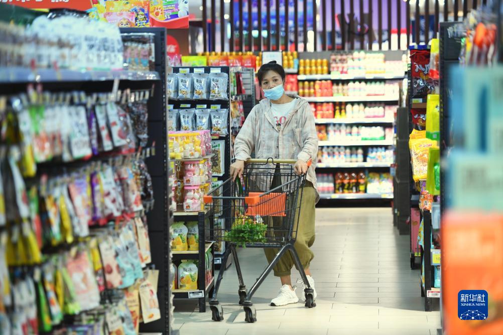 8月10日,市民在涿州市惠友超市鑽石廣場店選購商品。