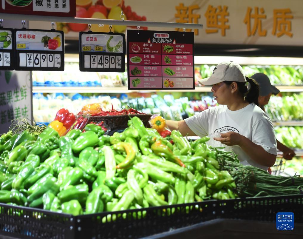 8月10日,市民在涿州市惠友超市鑽石廣場店選購蔬菜。