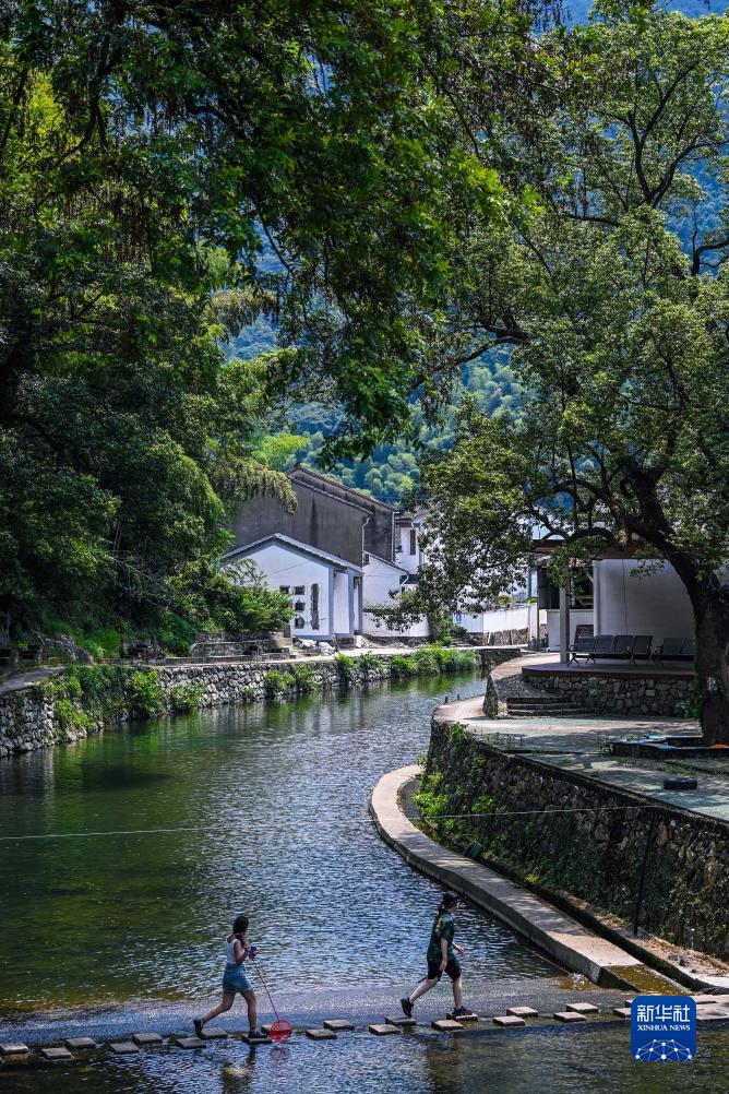 8月10日,游客在寧波市鄞州區城楊村游玩。該村是寧波“最美精品線路”的重要節點。2020年城楊村積極推動特色鄉村旅游産業發展,集體經濟年收入從不足10萬元發展到如今年收入已超50萬元,每年接待游客超15萬人次。