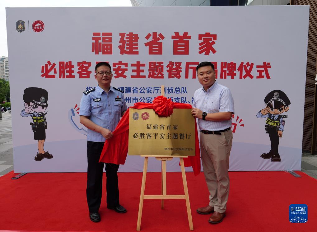 8月10日,福州市公安局刑偵支隊和福建必勝客的相關負責人為福建省首家平安主題餐廳揭牌。