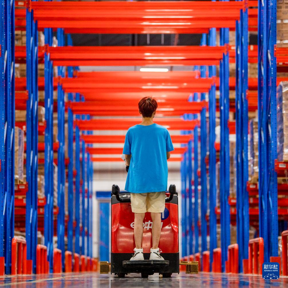8月10日,在浙江省金華市金義綜合保稅區雲倉跨境華東中心倉內,工作人員在發貨前理貨。