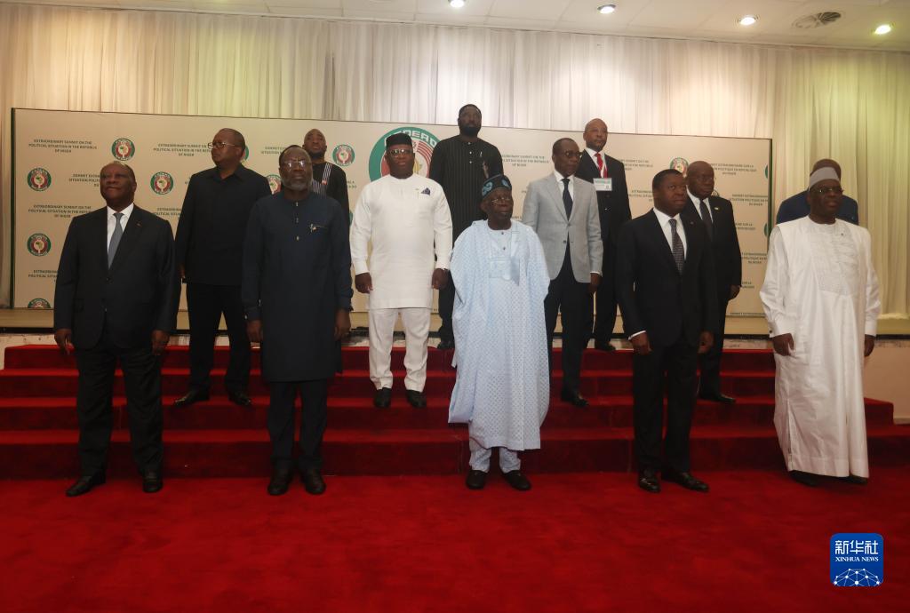 8月10日,在尼日利亞首都阿布賈,西共體領導人在就尼日爾政變召開的緊急會議現場合影。