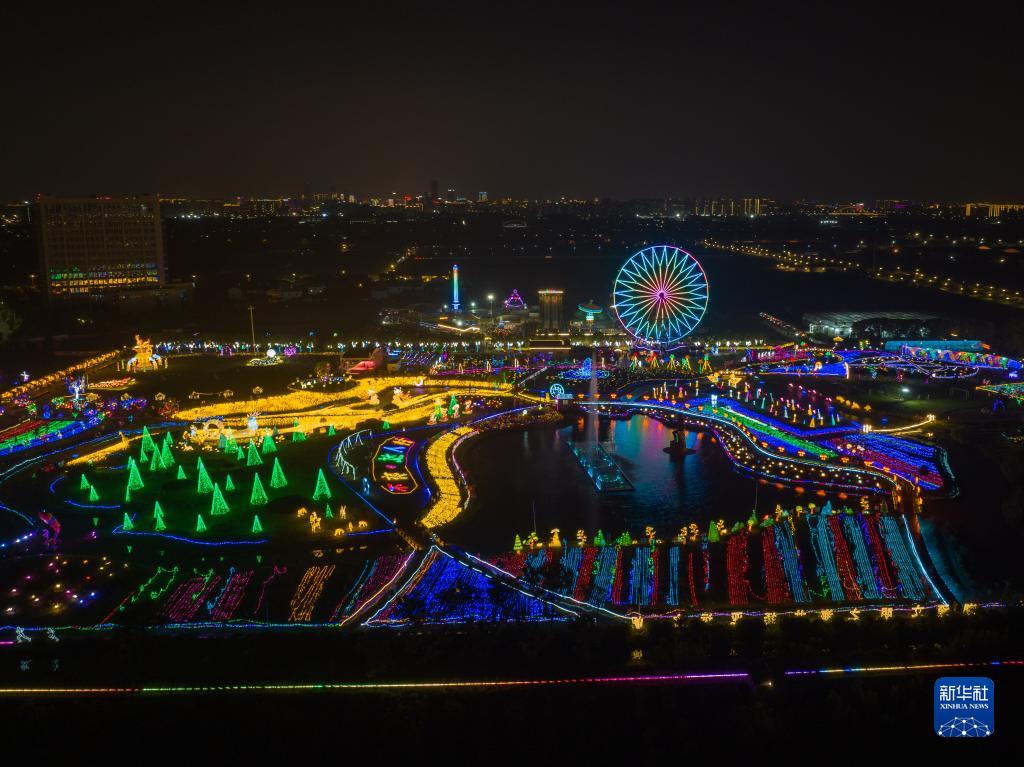 8月10日拍攝的寧波市江北區達人村景區夜景(無人機照片)。