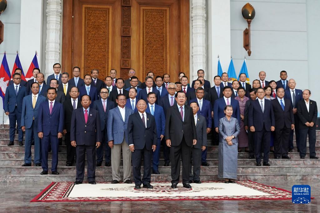 8月10日下午,柬埔寨首相、柬埔寨人民黨主席洪森在柬埔寨人民黨總部會見新舊內閣成員。候任首相洪瑪奈率領新政府內閣成員集體亮相。