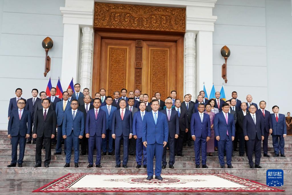 8月10日下午,柬埔寨首相、柬埔寨人民黨主席洪森在柬埔寨人民黨總部會見新舊內閣成員。候任首相洪瑪奈率領新政府內閣成員集體亮相。