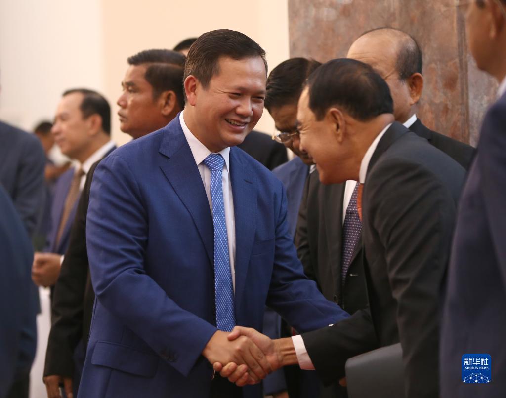 8月10日,柬埔寨候任首相洪瑪奈(左)在柬埔寨首都金邊參加政務活動。