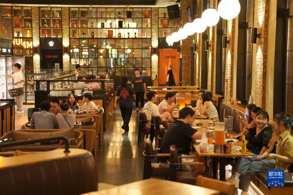 消費者在西安市一家餐吧內就餐休閒(7月30日攝)。