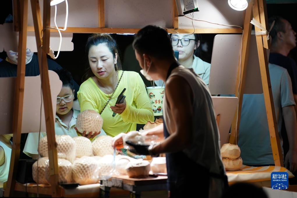 8月10日,游人在西安市浐灞生態區的後備箱集市上消費。