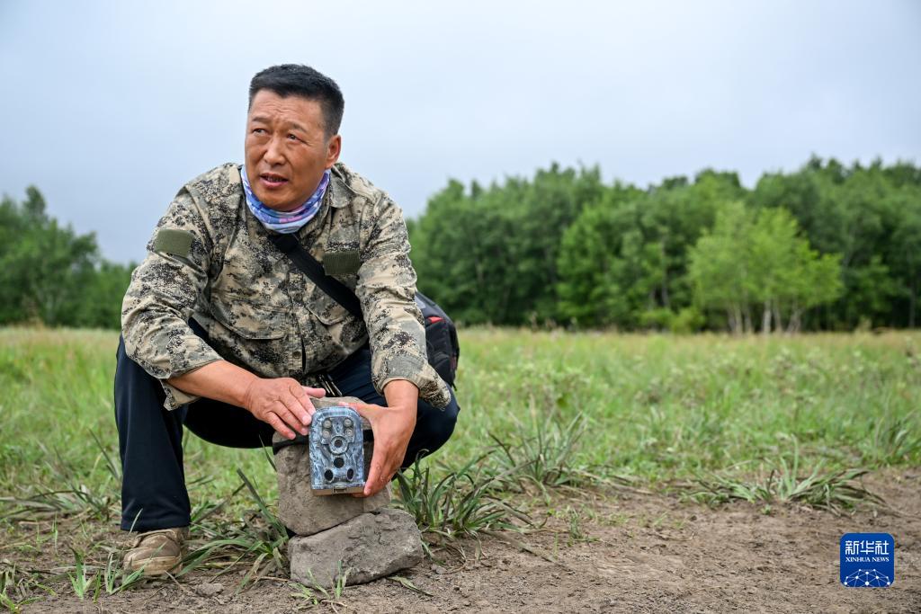 8月4日,白巴嘎那在馬鹿出沒的地方架設紅外相機。