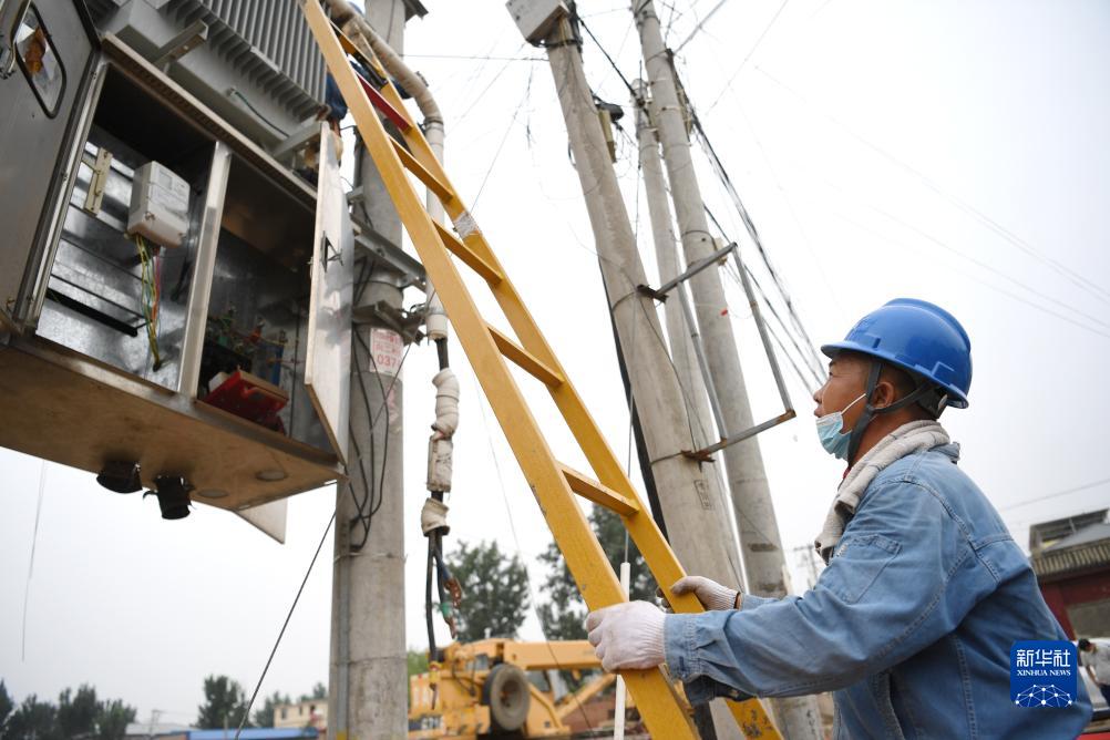 8月11日,邯鄲供電公司搶修人員在涿州市碼頭鎮向一村搶修電力設施。