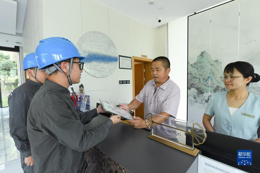 8月11日,電力工作人員給余村的一家酒店頒發綠證。