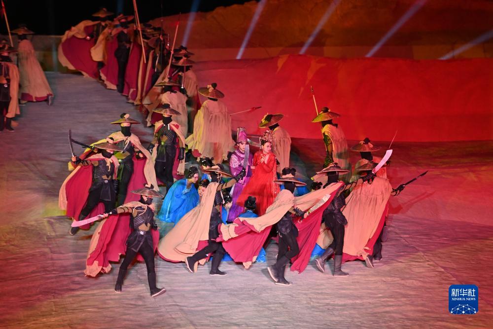 今年以來,脫胎於敦煌文化的洞窟沉浸式體驗劇《樂動敦煌》、室內情景體驗劇《又見敦煌》、沙漠實景演出《敦煌盛典》和中國殘疾人藝術團情景音畫劇《千手千眼》四場劇目在絲路名城甘肅敦煌同步上演,劇目將敦煌歷史底蘊、服飾文化、樂舞文化等生動融合,為游客呈現出精彩絕倫的敦煌文化視覺盛宴,深受中外游客喜愛。截至8月10日,四大劇目今年已累計演出1175場次,觀看游客突破66萬人次。其中,《敦煌盛典》以敦煌鳴沙山月牙泉為背景,將沙漠景觀與現代舞美結合,將墻體燈光融入實景演出,講述了一段發生在古絲綢之路重鎮敦煌的愛情故事,展示了敦煌的歷史文化及人文風貌。