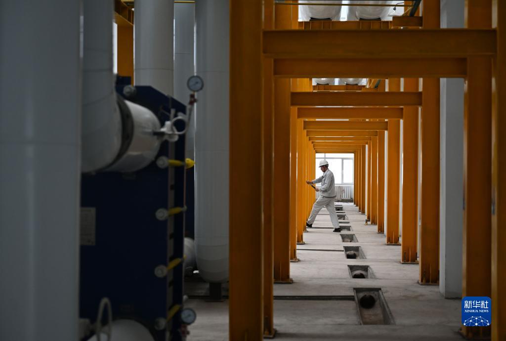 8月10日,工人在中國能建承建的張掖經開區零碳熱源廠施工。