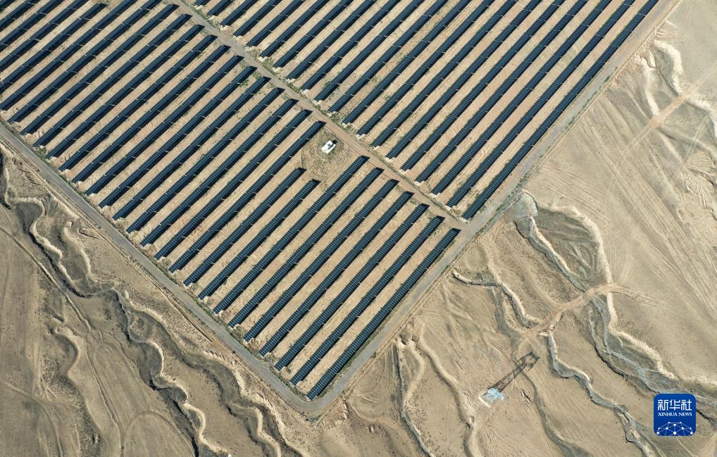 這是中國能建張掖甘州南灘30萬千瓦光伏發電項目(8月11日攝,無人機照片)。