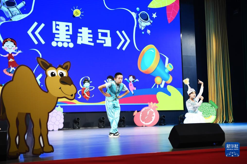 8月10日,在河南省科技館新館,夏令營學生在開營儀式上表演節目。