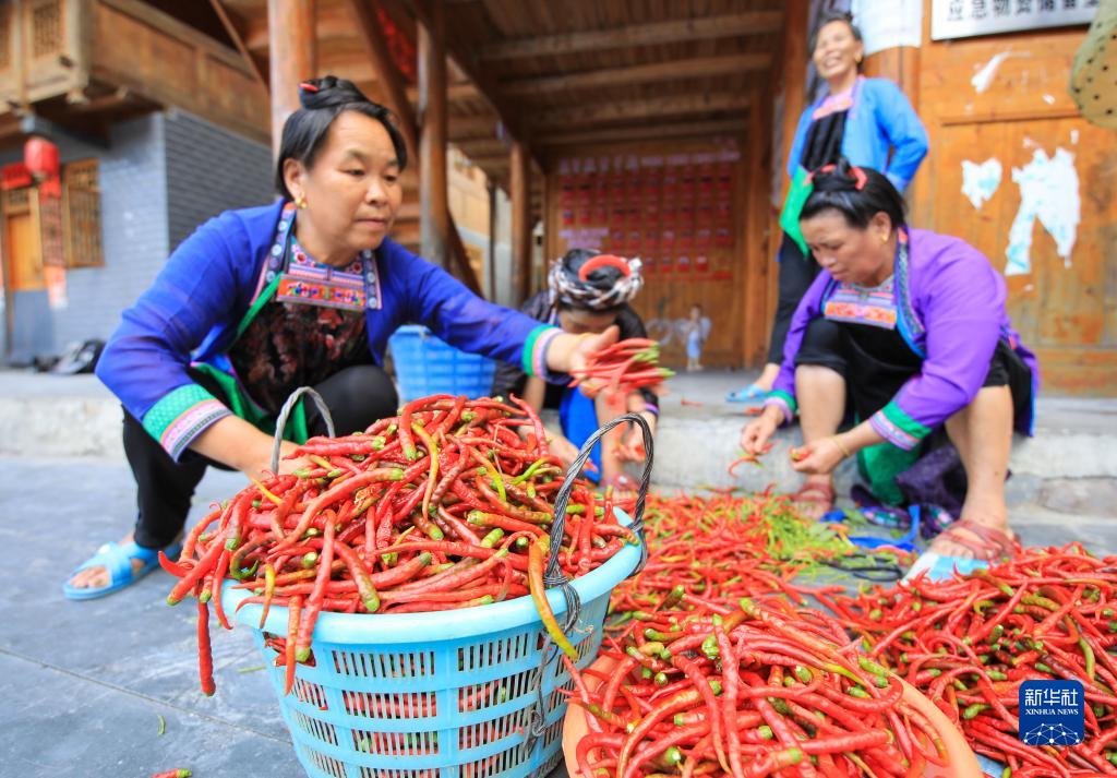 近日,貴州省黔東南苗族侗族自治州從江縣種植的2.7余萬畝辣椒迎來收穫季,村民們忙着採摘、搬運、晾曬辣椒,一派喜人的豐收景象。近年來,從江縣積極調整農業産業結構,因地制宜大力發展辣椒種植産業,帶動當地農戶增收。
