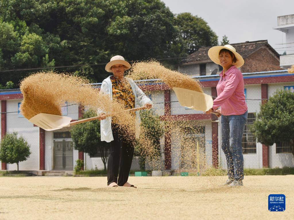 立秋以來,貴州、湖南等地農民搶抓晴好天氣,晾曬收穫的作物。