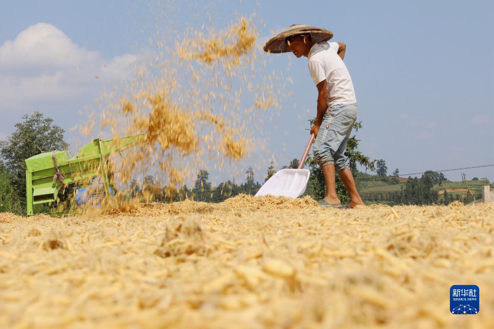 立秋以來,貴州、湖南等地農民搶抓晴好天氣,晾曬收穫的作物。