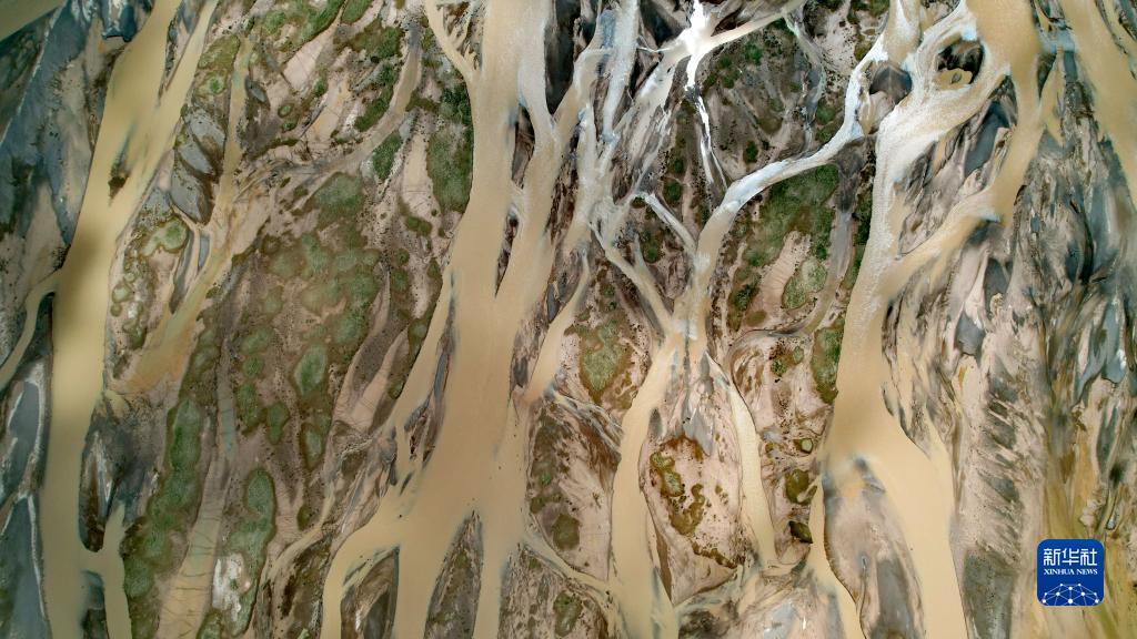 在沱沱河與當曲匯合處的囊極巴隴拍攝的辮狀河道局部(7月26日攝,無人機照片)。