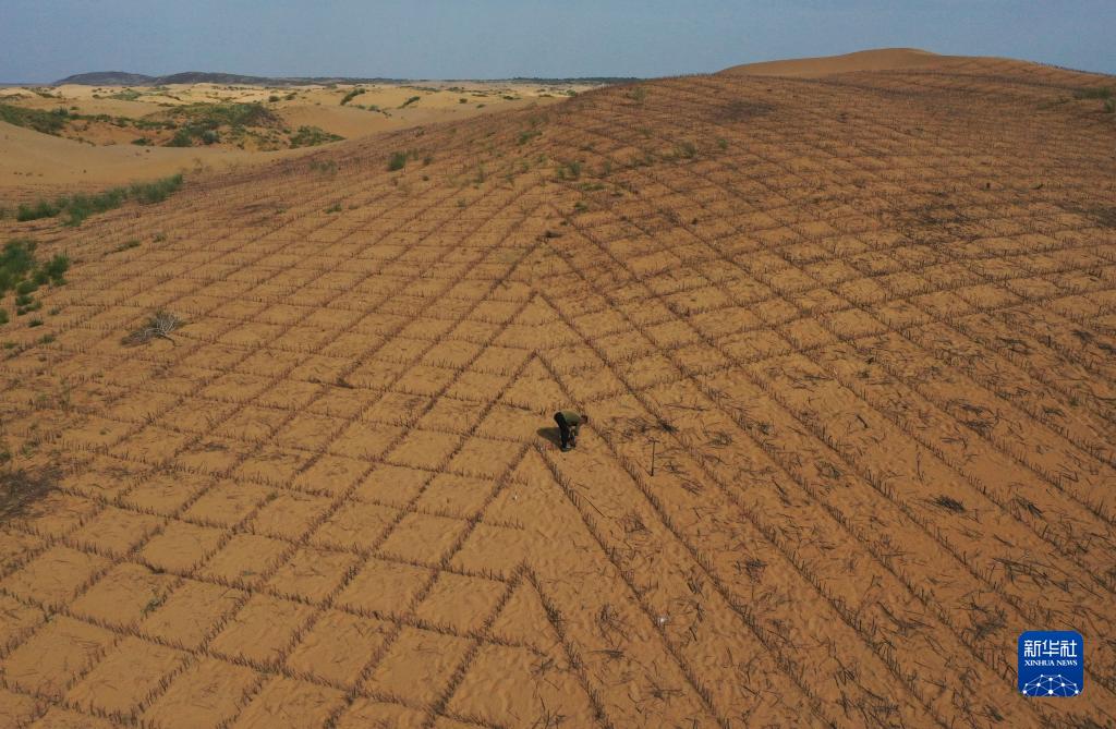 為進一步加強荒漠化綜合防治,內蒙古鄂爾多斯市達拉特旗組織幹部群眾、治沙工人深入庫布其沙漠栽設沙障,防風固沙。從今年四月份至今,達拉特旗已累計栽植沙障一萬多畝。