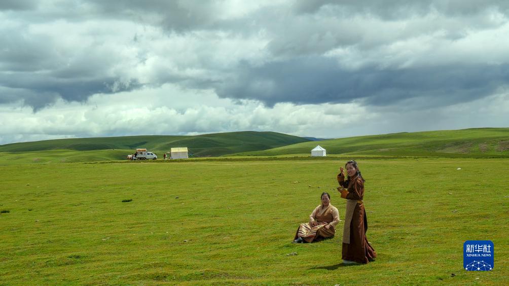 8月11日,游客在羌塘草原上賞景游樂。