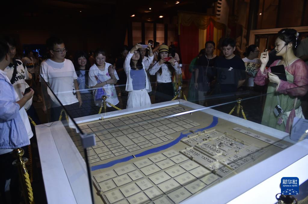 8月11日晚,游人在洛陽應天門遺址博物館內參觀。