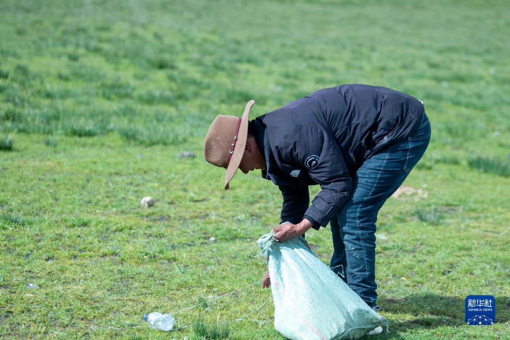 8月11日,次扎達在轉換牧場時撿拾生活垃圾。