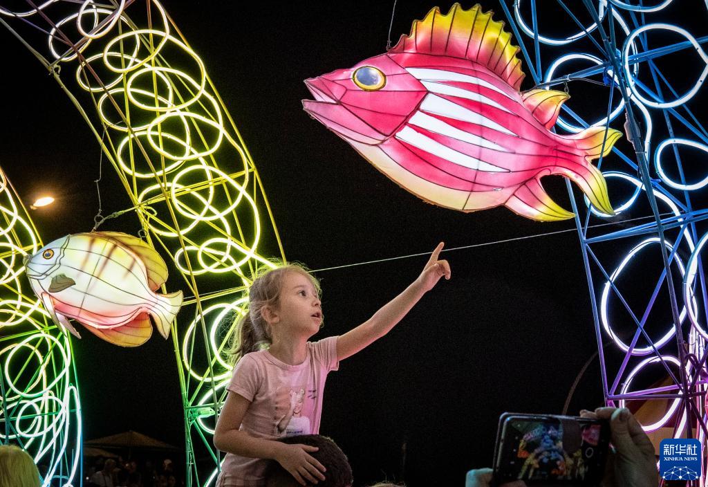 近日,以色列特拉維夫市的中國綵燈展成為當地民眾夜間納涼的好去處。此次展出的多組綵燈包括中國龍、熊貓等主題,造型各異、栩栩如生,極具中國韻味。燈展將持續至17日。