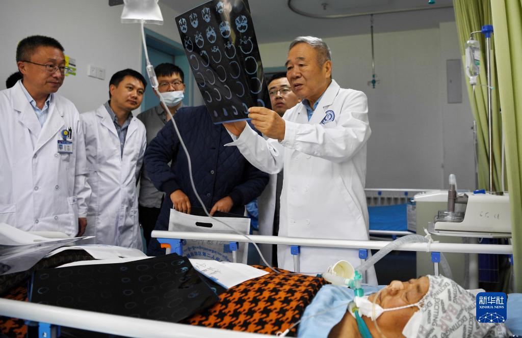 8月10日,中國科學院院士、首都醫科大學附屬北京天壇醫院神經外科學中心主任醫師趙繼宗(後右一)在西藏自治區第二人民醫院為患者會診。