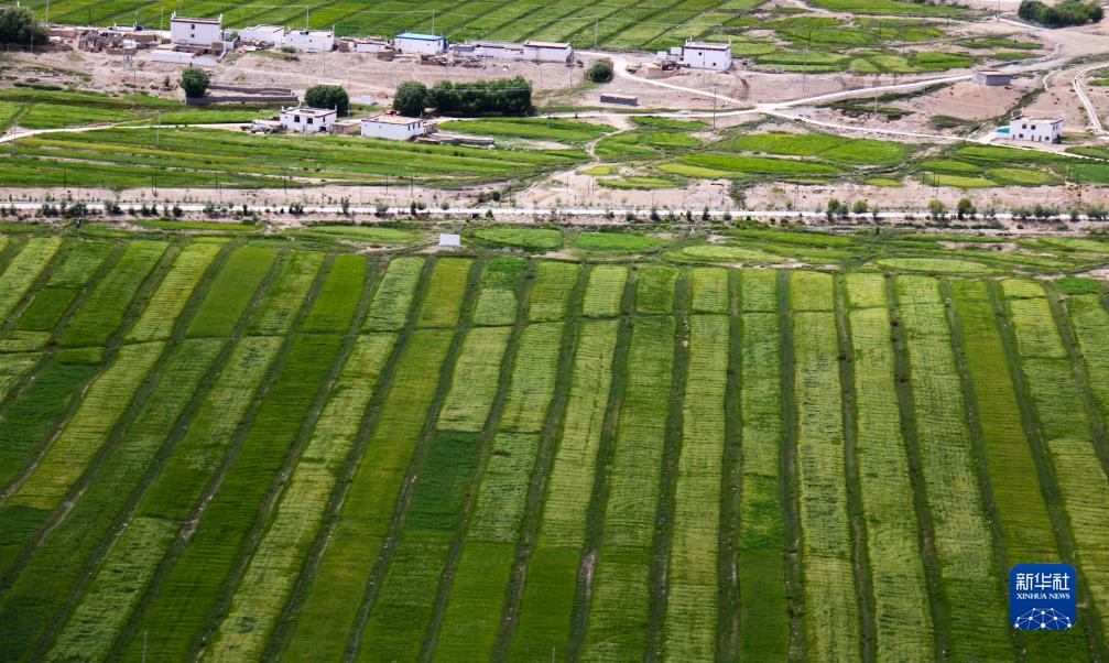 西藏阿里地區普蘭縣青稞長勢喜人(無人機照片,8月12日攝)。