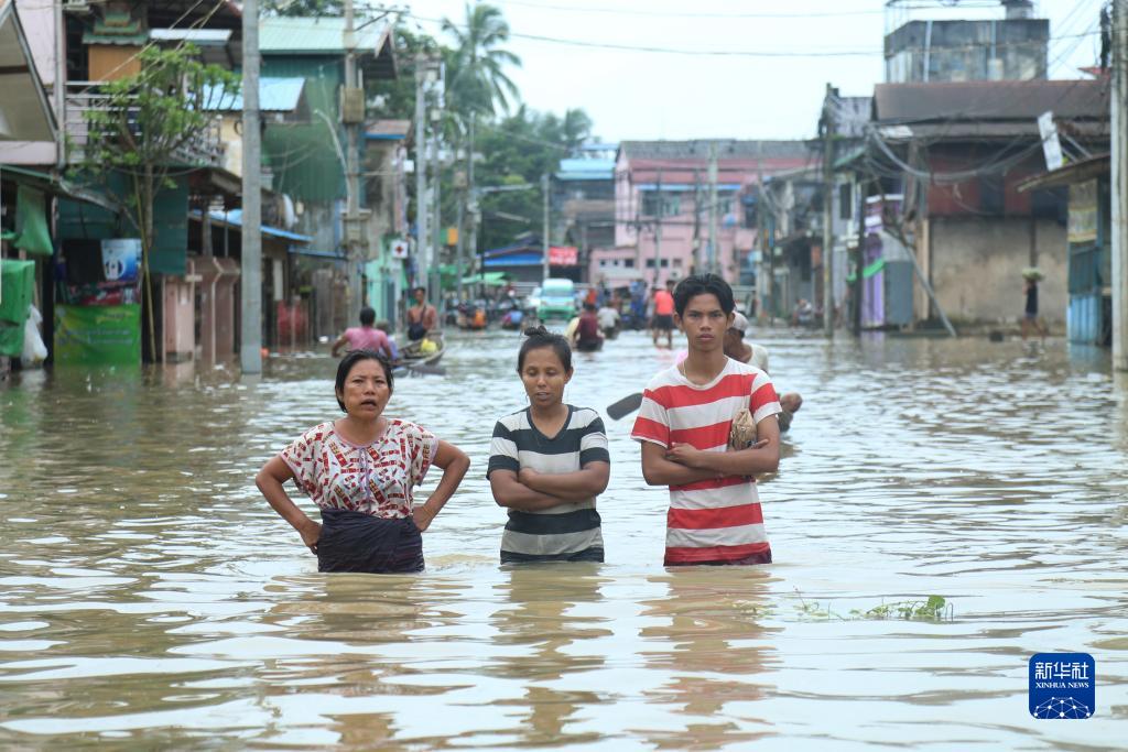 連日來持續的強降雨引發緬甸多地洪水和河水水位上漲。新華社發(苗覺梭攝)