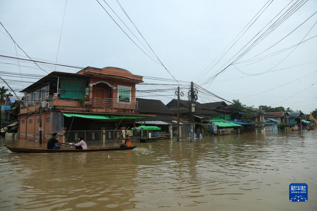 這是8月12日拍攝的緬甸勃固鎮洪災區。新華社發(苗覺梭攝)