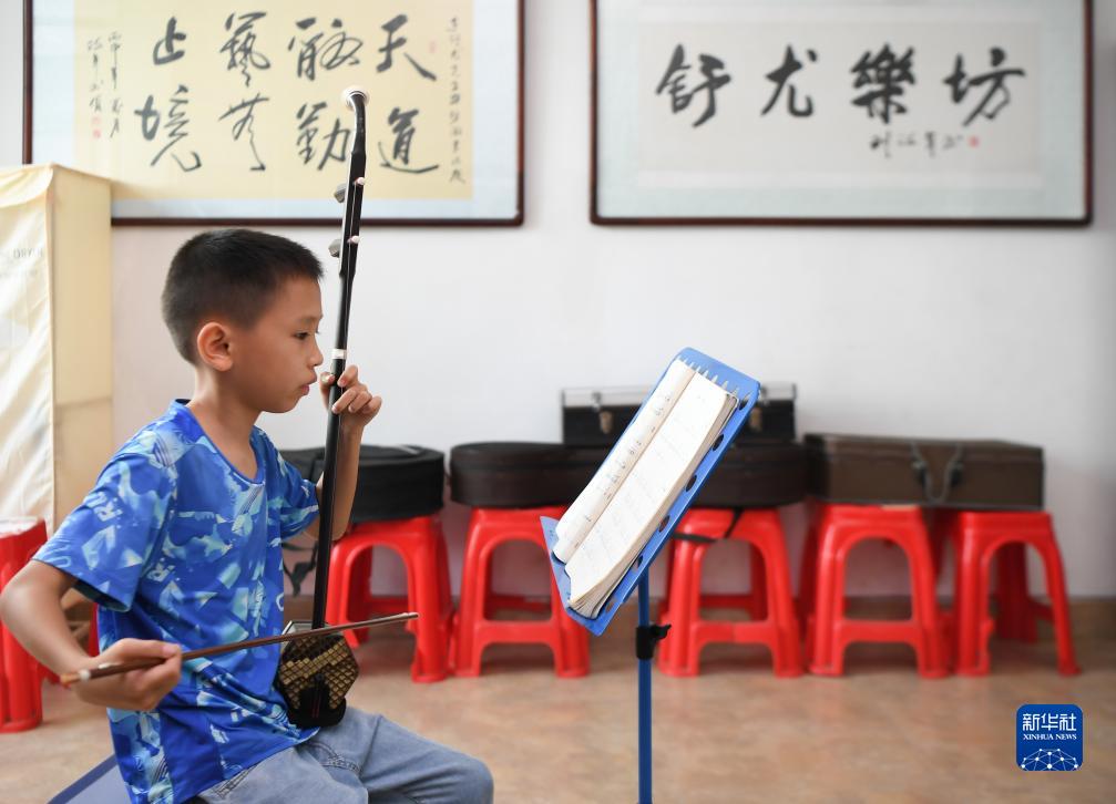 8月12日,一名學生下課後在枧頭洲村舒尤樂坊主動加練二胡。