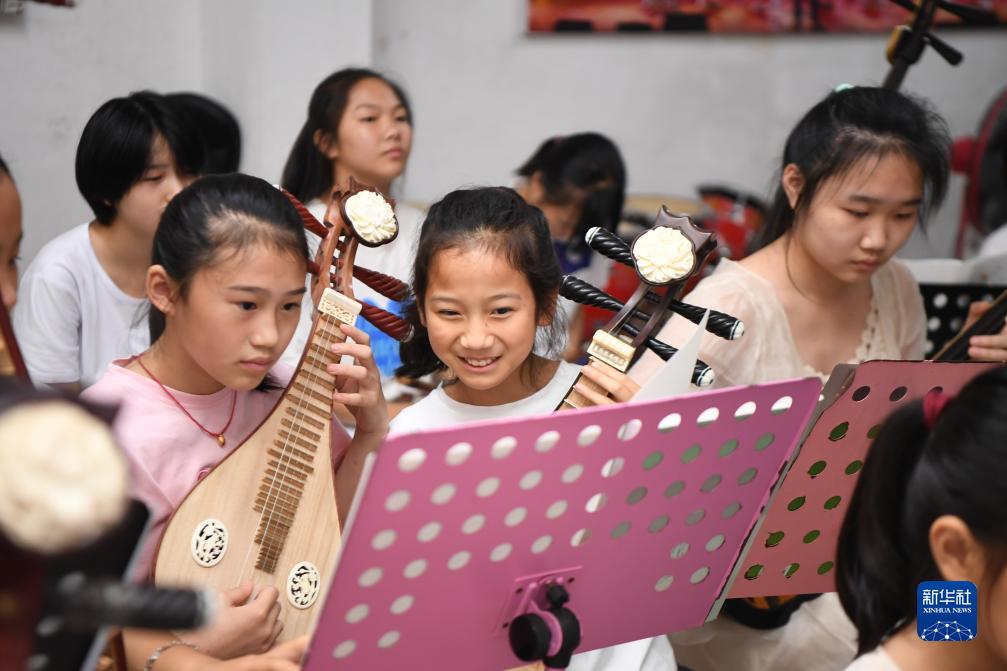 8月12日,學生們在枧頭洲村舒尤樂坊內上課。
