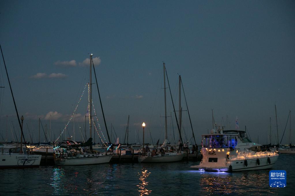 這是8月12日在芝加哥拍攝的“威尼斯遊船秀”現場。