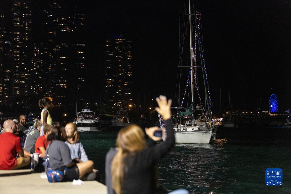 這是8月12日在芝加哥拍攝的“威尼斯遊船秀”現場。