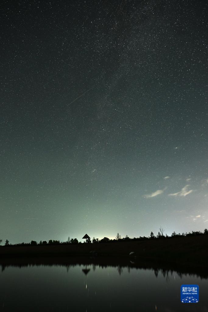 這是在哈巴湖國家級自然保護區拍攝的英仙座流星雨(8月12日攝)。