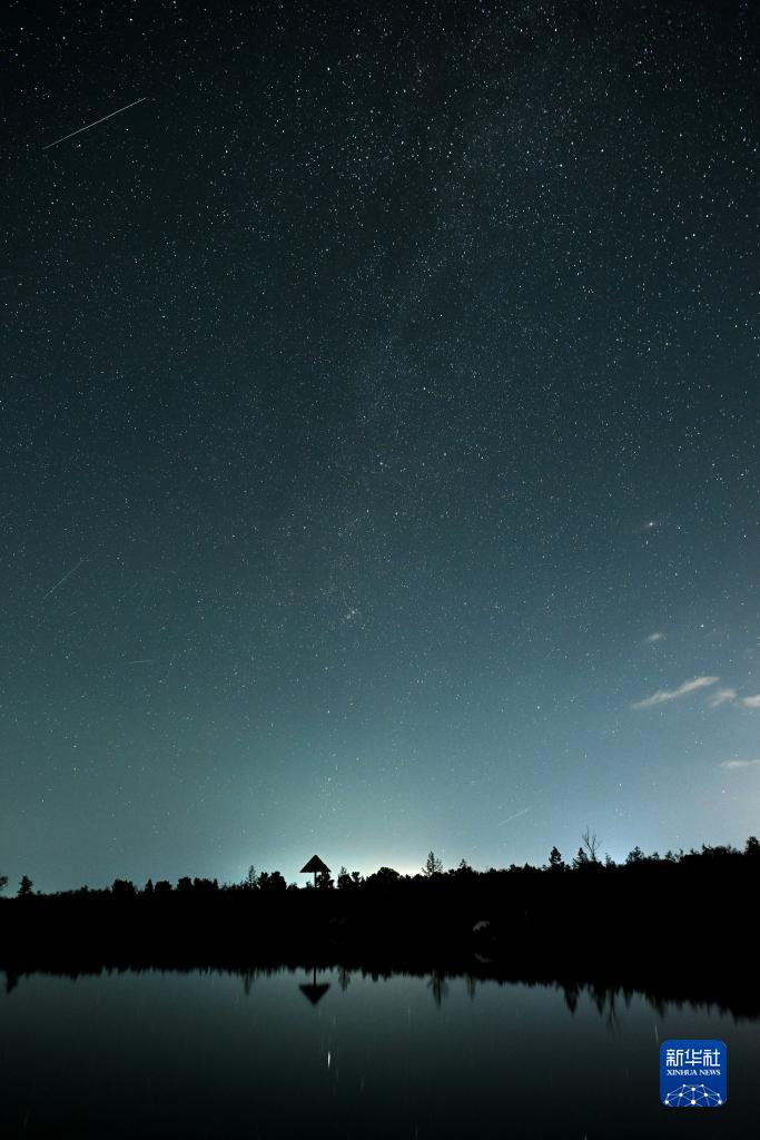 這是在哈巴湖國家級自然保護區拍攝的英仙座流星雨(8月12日攝)。