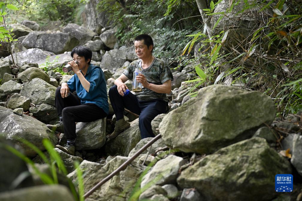 8月11日,在安徽天馬國家級自然保護區天堂寨管理站,王克東和高開玉在巡山護林途中休息。