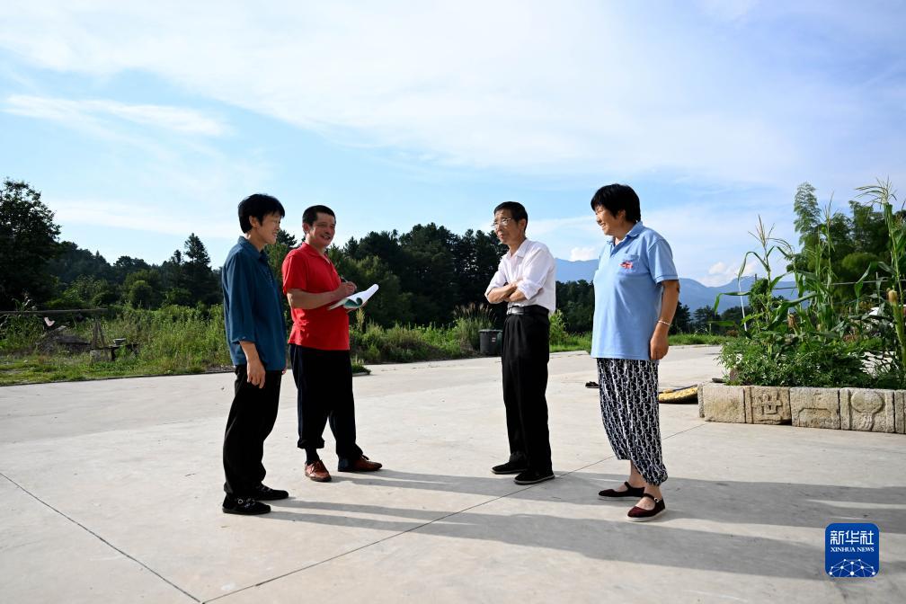 8月11日,在安徽天馬國家級自然保護區天堂寨管理站,王克東和高開玉向村民宣傳森林防火知識。