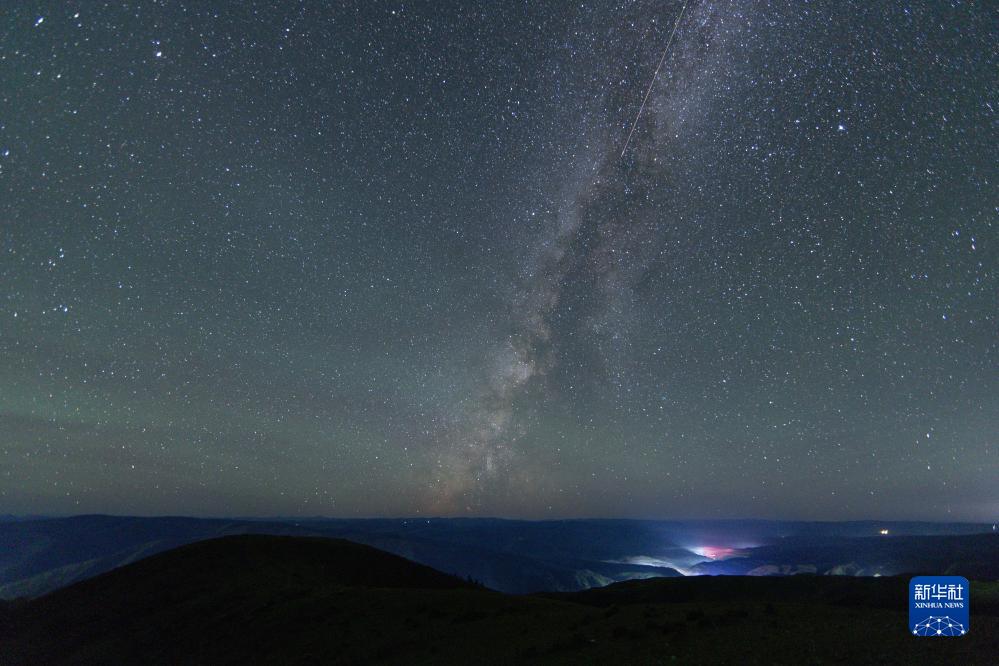 在四川省紅原縣安曲鎮,英仙座流星雨劃過夜空(8月13日攝)。