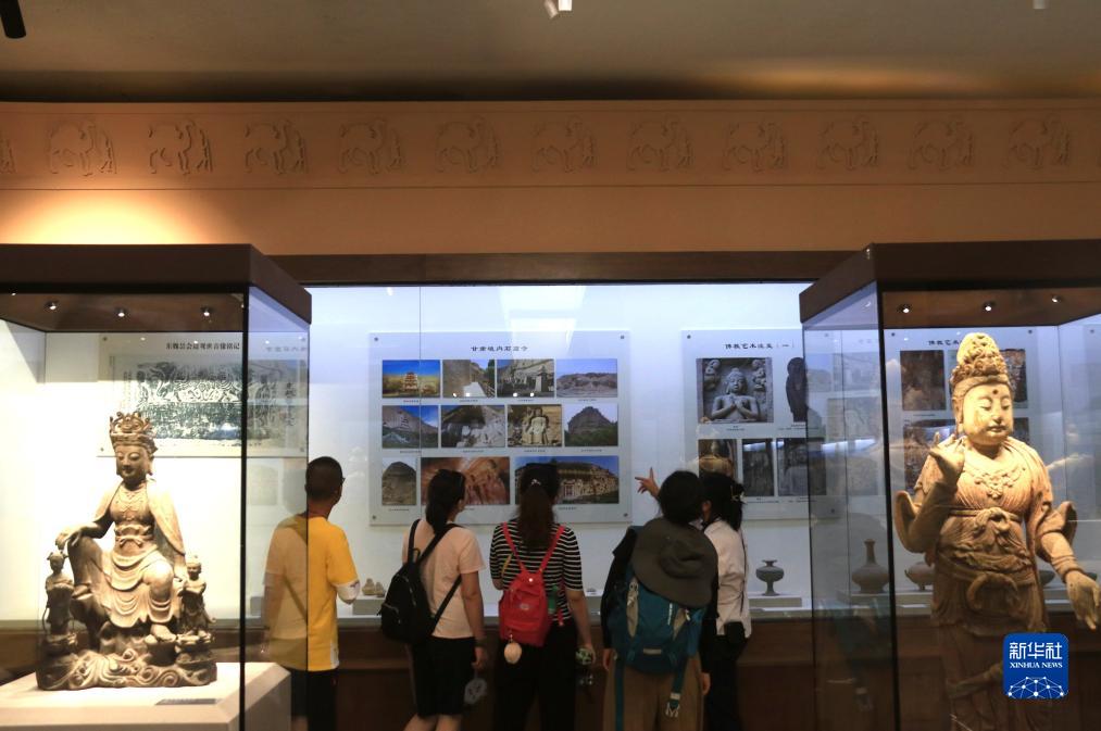8月6日,游客在甘肅省敦煌市陽關景區內的博物館參觀。