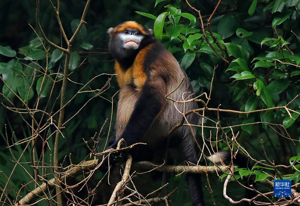 一隻黔金絲猴在梵凈山密林中休憩(2022年11月19日攝)。