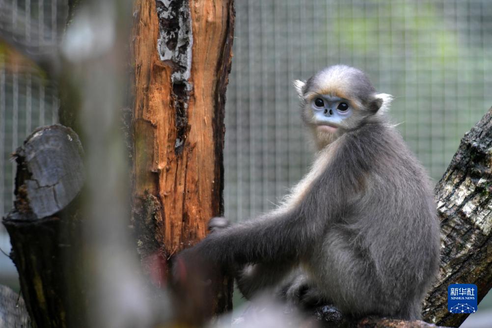 這是8月14日在梵凈山野生動物救護中心拍攝的黔金絲猴。