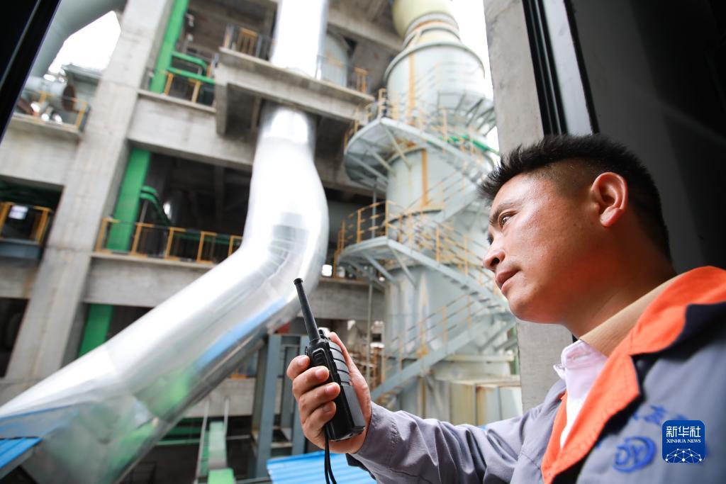 8月14日,工人在貴州磷化綠色環保産業有限公司高溫石膏粉生産車間工作。